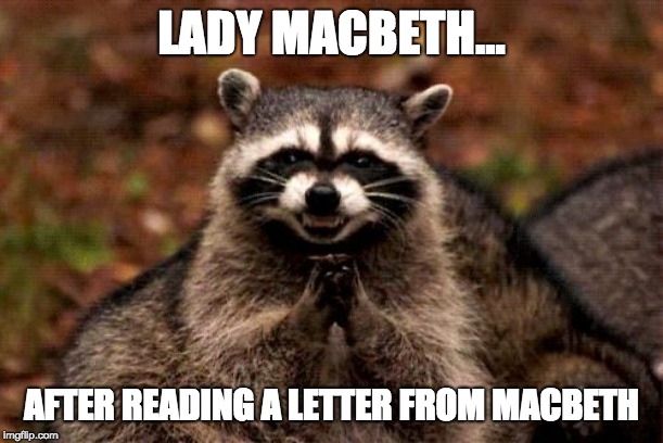 Lady Macbeth reads a letter from Macbeth and finds out about the witches’ prophecy that he will be king. Lady Macbeth then discovers that King Duncan will come to Macbeth’s castle that evening. She decides that it is her chance to act and plot about Duncan’s murder. She is evil and ambitious but also mysterious.