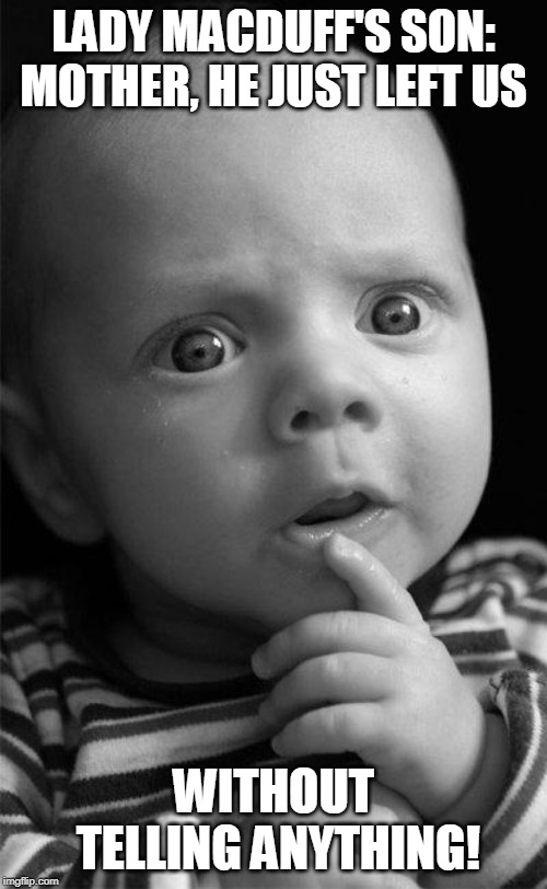 Lady Macduff and her son’s conversation in this part serve as a comic relief, as the calm before the storm. This tells that both, Lady Macduff and his son are innocent and Macbeth kill them without any reason, that is why their murder differ from Macbeth’s previous crimes. Macduff abandoned his family to go to England but after he left his son and Lady Macduff are killed. There is the theme of violence, over-confidence and ambition.