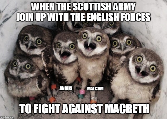Malcom arrives at Macbeth’s castle with his forces and he orders the soldiers to drop their branches and to attack. Siward leads the attack and Malcom follows behind Macduff. The major themes are violence and revenge.