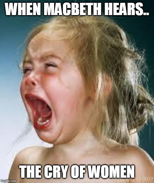 In an atmosphere of violence, Macbeth feels secure behind his castle but he is distracted by the cry of women and is informed that his wife is dead. At this point he thinks about the meaninglessness of short life comparing it to a candle and a walking shadow.